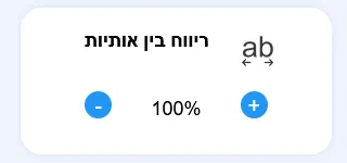 מאפשר להגדיל או להקטין את המרווח בין אות לאות. מיועד לשפר את הקריאות עבור משתמשים עם לקויות למידה, דיסלקציה או עיוורון חלקי.